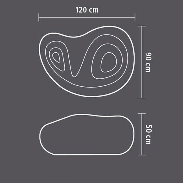 Der Sitzstein PEBBO wirkt wie ein sehr großer Kieselstein mit zwei organisch geformten Sitzmulden. PEBBO ist 120 x 90 x 50 Zentimeter (LxBxH) groß und 65 Kilogramm leicht.Seine Betonoberfläche weist typische Schattierungen sowie unterschiedlich strukturierte Bereiche auf. Kleine Poren, Lunker, dunklere oder hellere Stellen sind natürliche Merkmale des Materials. Die Pebstones werden einzeln in Handarbeit gefertigt.